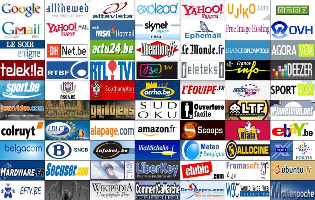 Google All The Web Altavista Exalead Yahoo Ujiko Open Directory Project Gmail Yahoo Mail Hotmail Skynet Webmail Creez vous une adresse email jetable gratuitement Free image hosting OVH Le Soir La Derniere Heure / Les Sports Le premier site d'information des regions en Belgique Liberation Le Monde Le Monde Diplomatique Le Media Citoyen Telekila RTBF RTl TVI Be TV Teletekst VRT France Info Deezer - Musique à la demande Sport.be RSC Anderlecht Southampton FC Le site de l'ACHRO L'Equipe Eurosport Le Media Citoyen La Reference des Jeux Video sur PC et Consoles Flash Games Griddlers Websudoku Ouverture Facile L'histoire des vieux jeux video Le site de l'emulation Colruyt LDLC Belgique Alapage Amazon France Portail du cinema Kiala Belgique Ebay.be Belgacom SNCB Infobel ViaMichelin Meteo Belgique Tout sur le cinema Dexia Fortis Hardware.fr Secuser ADSL Consortium Liberkey Clubic Framasoft : le site du logiciel libre Communaute francophone des utilisateurs d'Ubuntu Le site de l'Ecole des Freres de Tournai Le Site des Exercices Wikipedia Commentcamarche.net Club d'entraide des developpeurs francophones World Wide Web Consortium Mathenpoche