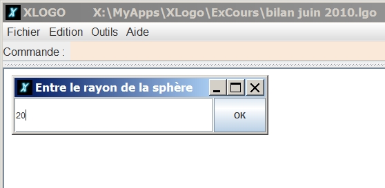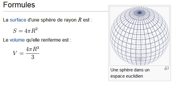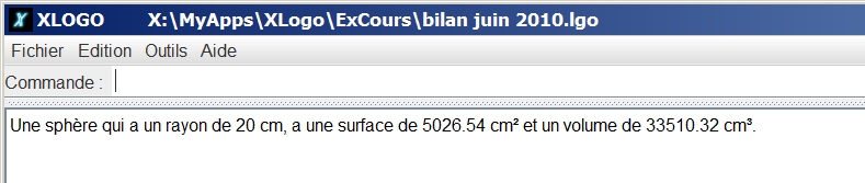 Construire un programme qui va demander à l'utilisateur d'entrer le rayon de la sphère (1) et ensuite qui va calculer la surface et le volume de cette sphère (2).